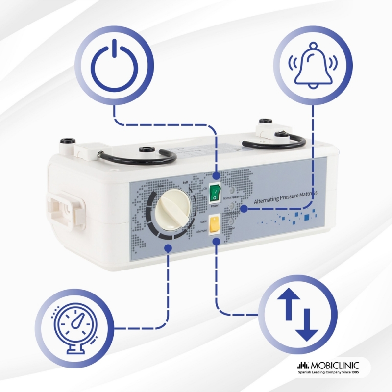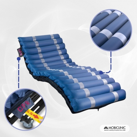 - Il comprend également une fonction d'oreiller anti-escarres , dans laquelle les cellules positionnées à hauteur de la tête n'alternent pas pour offrir un plus grand confort au patient.