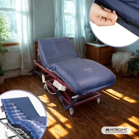 Matelas à air anti escarres | Avec compresseur | Différentes largeurs | 17 cellules | TPU Nylon | Bleu | Mobi 3 | Mobiclinic