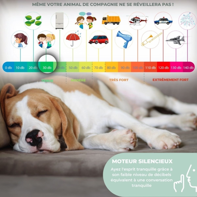 D'autre part, le compresseur de matelas anti-escarres est compact, fiable, facile à utiliser et très silencieux , équivalent à une conversation à voix basse en proportion des niveaux de décibels par rapport aux différents types d'environnements, un point qui doit être pris en compte puisque pour son utilisation il doit être toujours connecté.