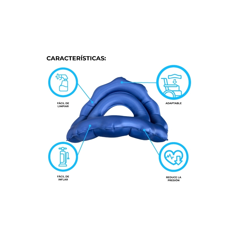 Les personnes qui doivent passer de longues périodes assises dans la même position sont vulnérables aux escarres ou aux plaies de pression. Dans ces cas, l'utilisation de produits anti cicatrices est recommandée à titre préventif ou thérapeutique. Les cellules d'air du coussin antitartre, de forme ronde, contribuent à minimiser la pression exercée par le corps, améliorant ainsi la circulation sanguine et aidant à prévenir les escarres. Grâce à sa conception, ce coussin d'air s'adaptera au corps de l'utilisateur à chaque mouvement. En outre, il contribuera à réduire la pression exercée par le corps sur le siège. Ce coussin d'air anti-scarification est facile à gonfler. Il possède une valve à air intégrée. Il comprend un gonfleur.