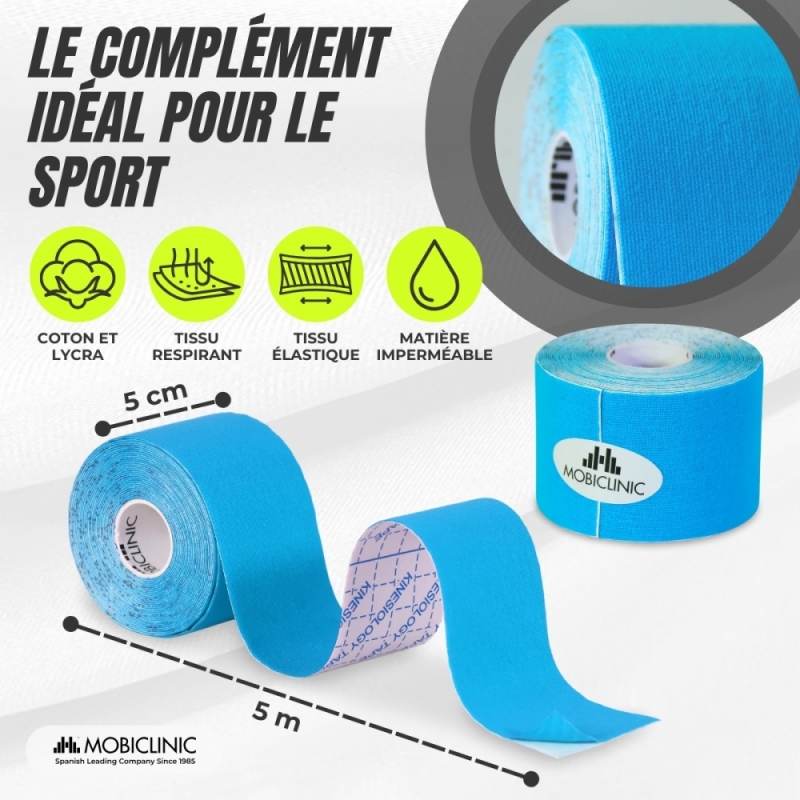 Le bandage kinésiologique est idéale pour traiter les inflammations, les douleurs musculaires et améliorer la circulation. Tout eux grâce à la résistance et transpirabilité apporté par un produit fabriqué avec un 97% en coton et un 3% en élasthanne.
