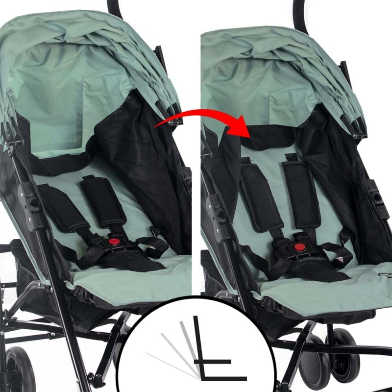 RESPALDO MULTIFUNCIÓN: la silla de paseo Elefant, es muy confortable, pues su respaldo multifunción y su reposapiés con dos niveles de regulación son ajustables, pudiéndose desplegar el asiento de tal forma que quede completamente plano para que el niño pueda descansar cómodamente en sus siestas al air libre. Le réglage du dossier se fait avec une sangle, s'ajustant ainsi à la hauteur souhaitée de 90º à 180º. C'est si simple que vous pouvez le faire d'une seule main.