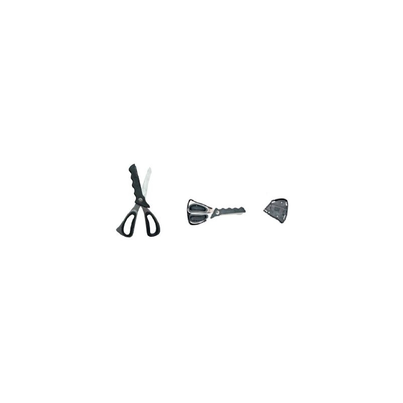 Ciseaux d'urgence Robin en acier inoxydable. La longueur du bord est de 25 cm. Avec support mural. Il peut être utilisé pour briser le verre dans des situations d'urgence.