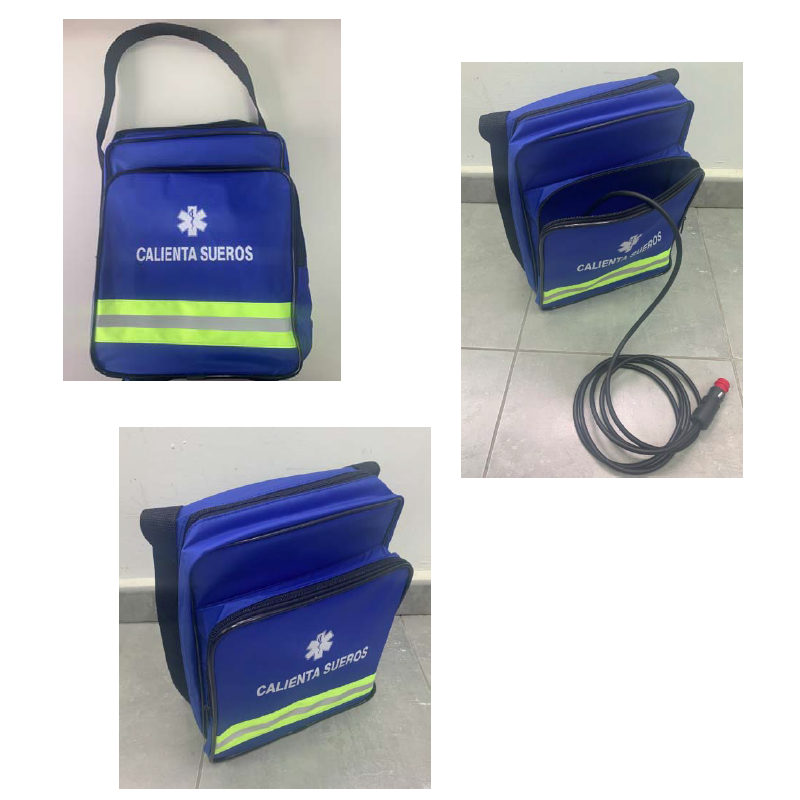 Sac à sérums chauffant en 12V avec prise allume cigare pour ambulance. Il permet de chauffer jusqu'à 2 sérums en même temps à une température constante de 37º. Il a un support pour accrocher à la barre porte-sérum ou à l'ancre de sérum ambulance. Il dispose également d'une bandoulière pour faciliter le transport à l'extérieur du véhicule.