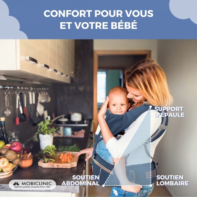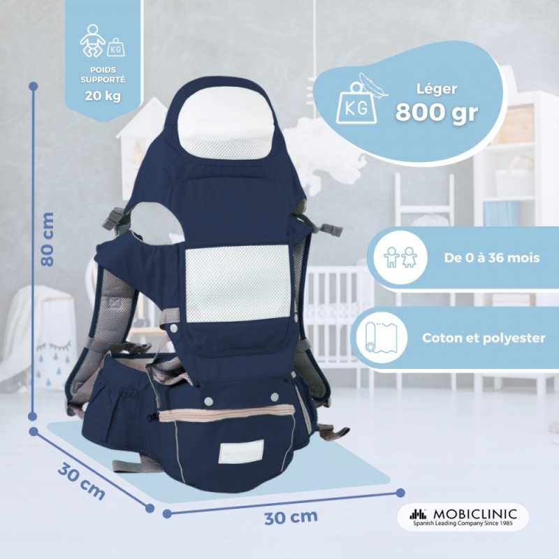 Porte-bébé 6 en 1 | Respirant | 0-36 mois | Bretelles réglables | Coton | Poche | Bleu | Moley | Mobiclinic