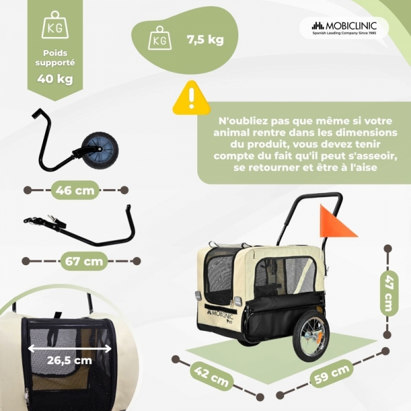 INSTALLATION RAPIDE ET PRATIQUE : Grâce à sa conception, cette remorque vélo pour chien est facile à monter. Idéale pour ceux qui recherchent un transport pratique, sûr et polyvalent.