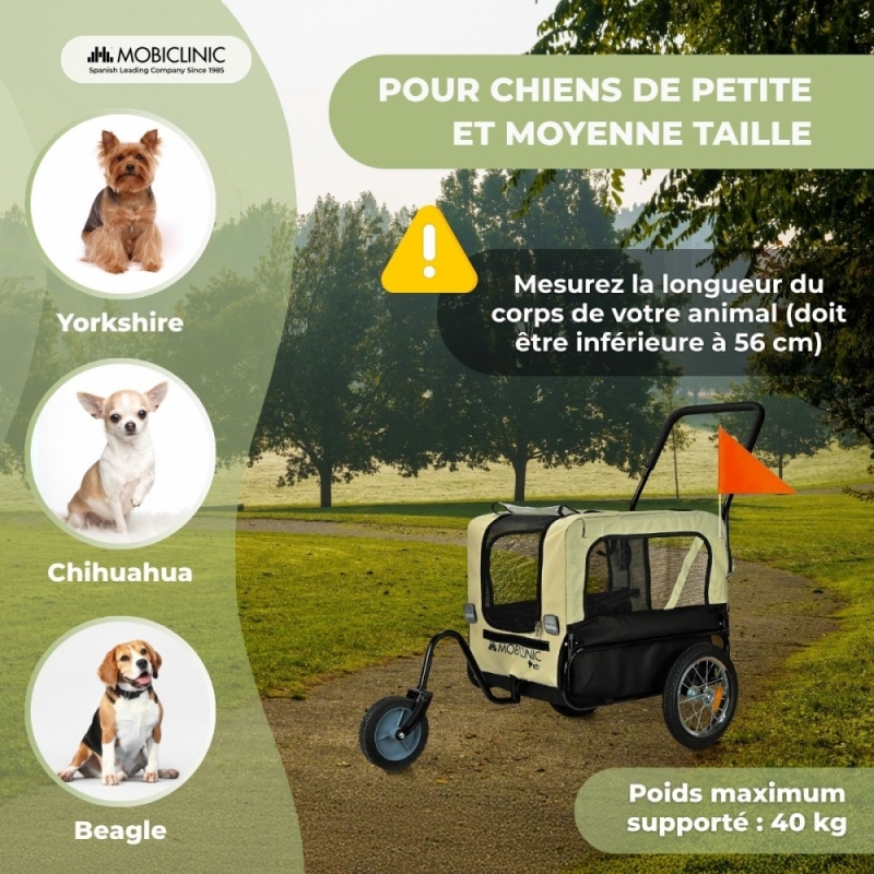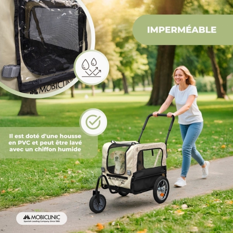 2 EN 1 : TRANSPORT POUR CHIEN ET REMORQUE À VÉLO : Cette remorque pour chien se transforme facilement en poussette grâce à sa roue avant amovible. Idéale pour des promenades ou des balades à vélo confortables avec votre animal.