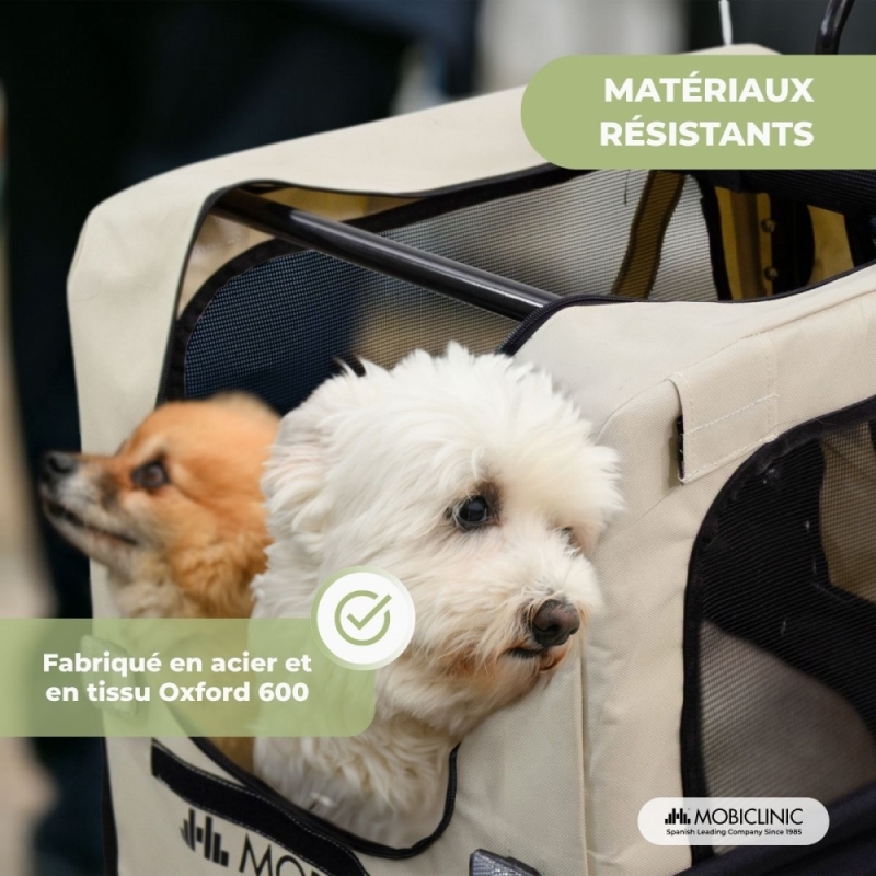 Spacieuse et fonctionnelle : sa cabine de 60 x 42 x 48 cm est idéale pour les chiens de petite et moyenne taille. Elle supporte jusqu'à 40 kg, offrant un transport confortable et sûr pour des races telles que le chihuahua, le bichon, le caniche nain, le schnauzer nain, le cocker ou le bouledogue français.