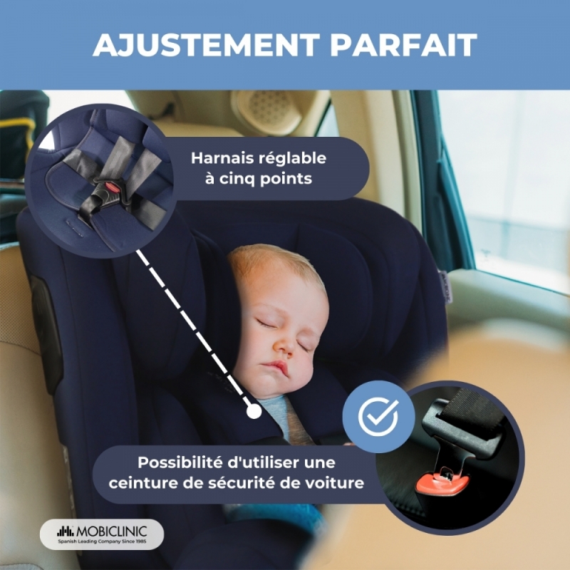 ROTATION À 360º : La rotation à 360º facilite l'accès à l'enfant sous n'importe quel angle, ce qui rend son placement ou son retrait du véhicule beaucoup plus confortable. Ce système permet également de changer facilement l'orientation de la chaise, en l'adaptant vers l'avant ou vers l'arrière en fonction de l'âge et de la taille de l'enfant. Le siège auto assure un placement adéquat à tout moment, favorisant le confort et la protection pendant le voyage.