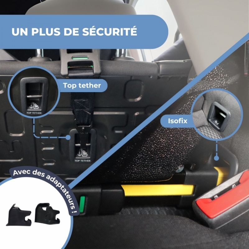 Equipé d'un système de sécurité Top Tether, le fauteuil garantit une fixation supplémentaire comme troisième point d'ancrage, empêchant tout mouvement vers l'avant en cas de collision et assurant une stabilité supérieure lors de chaque trajet. De plus, il dispose d'un harnais à 5 points intégré et réglable qui maintient l'enfant fermement retenu, répartissant les forces uniformément pour minimiser les risques.
