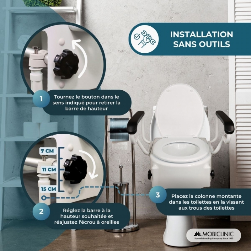 L'installation de l'adaptateur pour WC ne nécessite pas l'aide d'un professionnel car il s'adapte aux dimensions d'un WC classique.