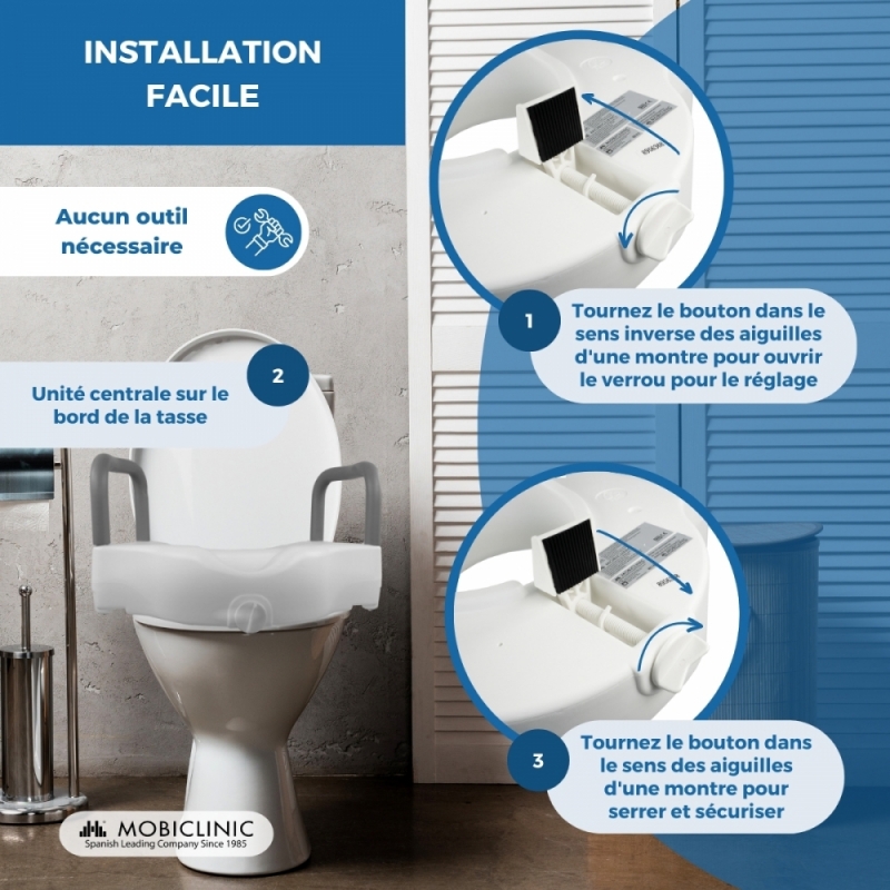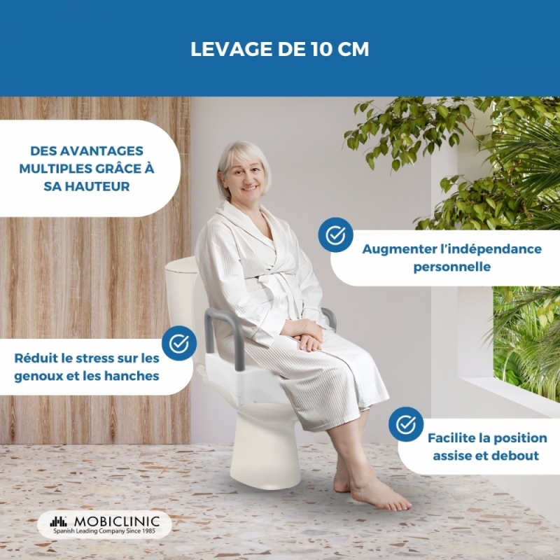 HYGIÈNE FACILE : le lève-toilettes est très facile à nettoyer grâce au matériau avec lequel il est fabriqué