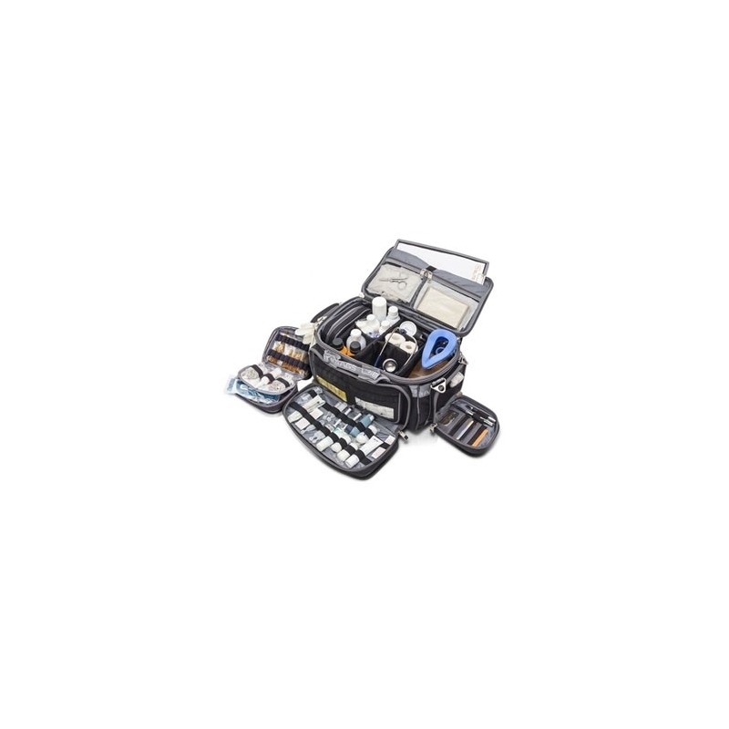 Sac de Sport soins dont l'organisation de type nid d'abeille permet de localiser rapidement l'ensemble des instruments et du matériel nécessaires autant pour agir sur un malade que sur un blessé sportif.
