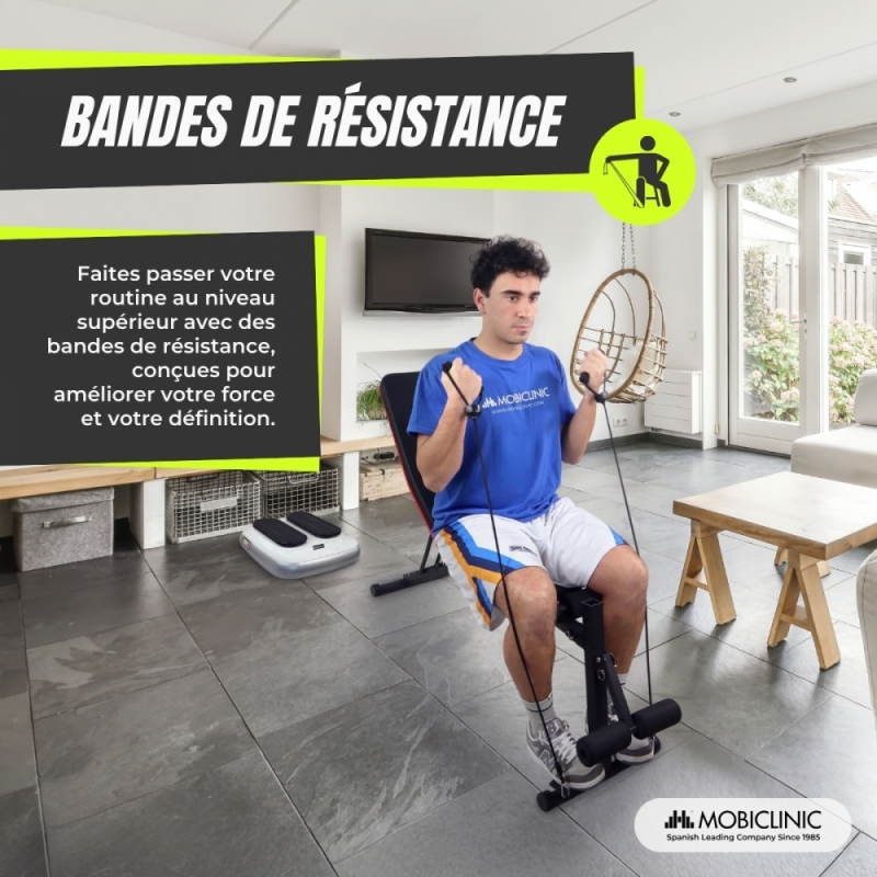 Le banc comprend des bandes de résistance qui permettent d'augmenter l'intensité des exercices, offrant ainsi un exercice encore plus complet. Avec toutes ces caractéristiques, c'est un produit idéal pour vous entraîner dans le confort de votre maison et atteindre vos objectifs.