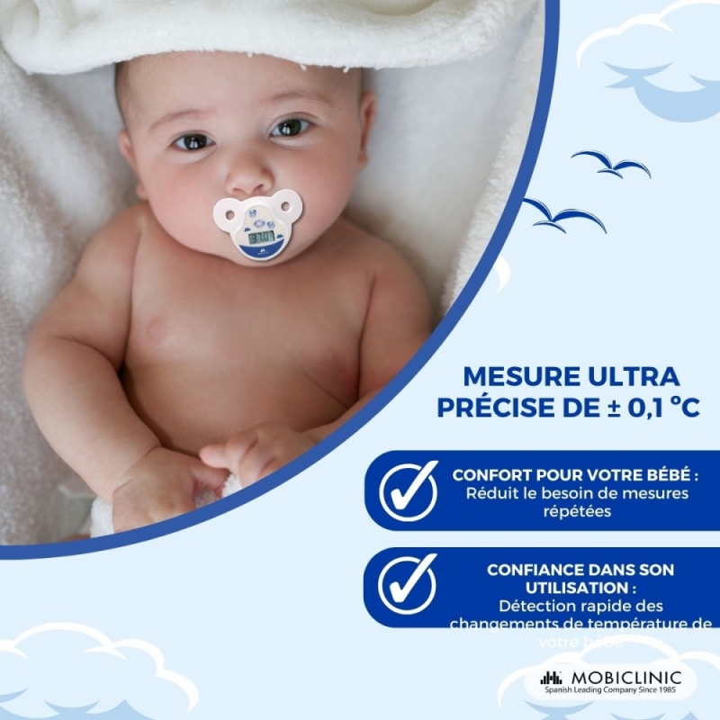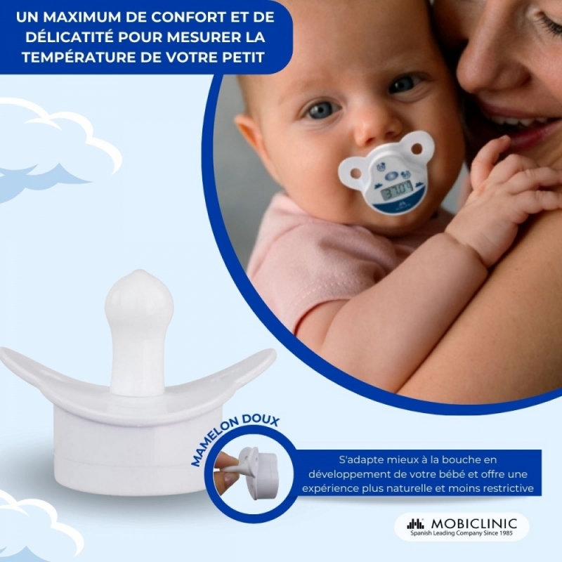 Thermomètre digital en forme de tétine | Thermomètre pour enfants | Tétine souple | Écran LCD |Mobiclinic