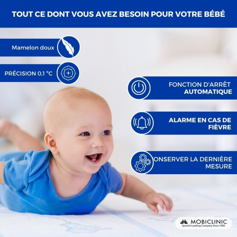 PRATIQUE: grâce à ce thermomètre pour enfants , vous n'aurez aucun problème à prendre la température des plus petits, offrant ainsi tranquillité d'esprit et normalité dans la mesure