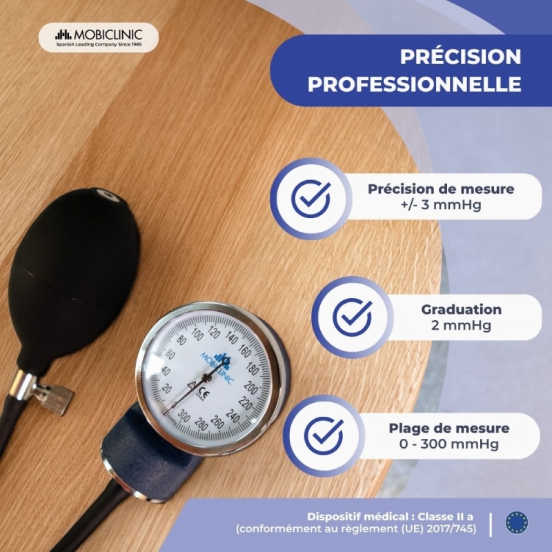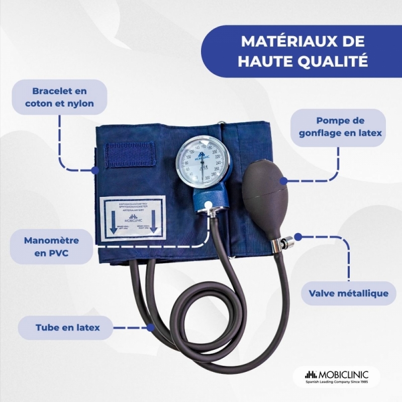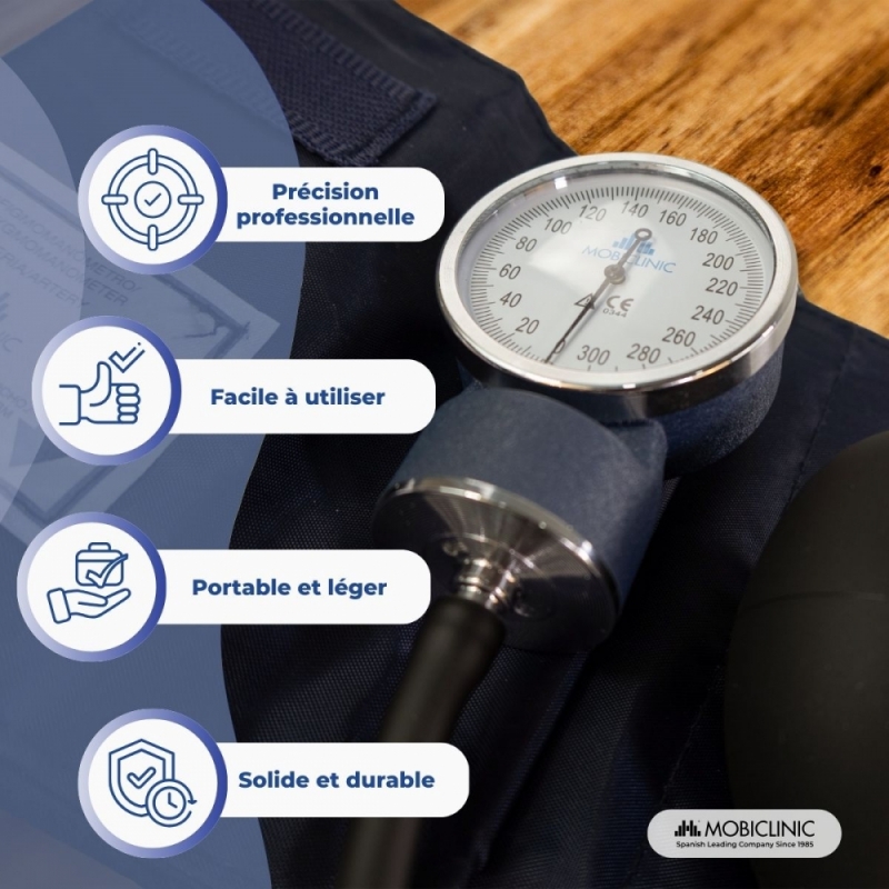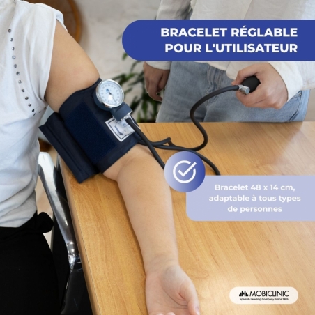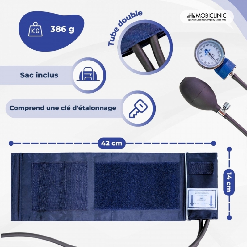 Tensiomètre anéroïde | Tension artérielle | Deux sorties | Confortable | Adaptable | Bleu | Mobiclinic