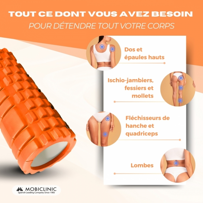 PRÉVENIR LES BLESSURES : À utiliser avant de courir pour s'étirer ou après une séance d'entraînement pour récupérer. Vous éviterez ainsi l’apparition de sciatique, de fasciite plantaire ou de tensions au niveau du cou et du dos. Parmi ses nombreux bienfaits, il réduit les tissus cicatriciels et la cellulite.