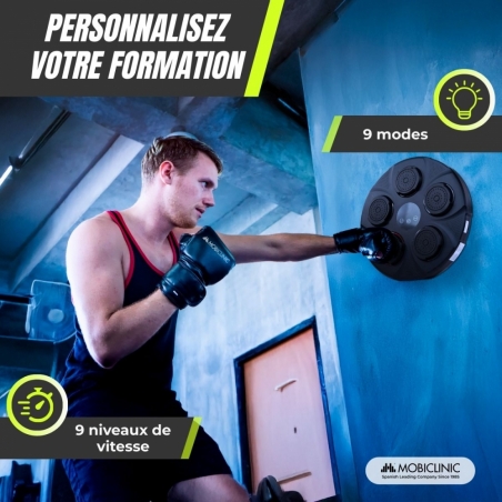 La machine de boxe musicale MusicKangu est l'outil idéal pour un entraînement plus ludique. Conçue pour les débutants comme pour les confirmés, elle offre une expérience alliant fitness et musique. Grâce à ses 9 modes et 9 vitesses réglables, vous pouvez personnaliser vos entraînements et travailler l'agilité, la coordination, l'endurance et la force.