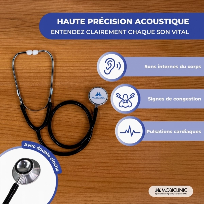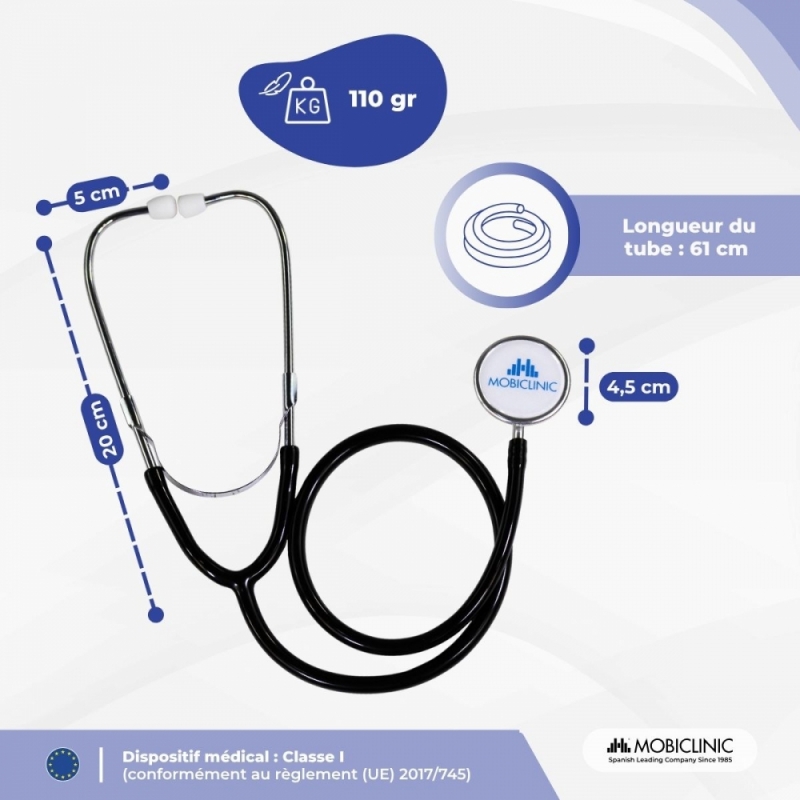 Stéthoscope à double pavillon | Aluminium | Noir | Mobiclinic