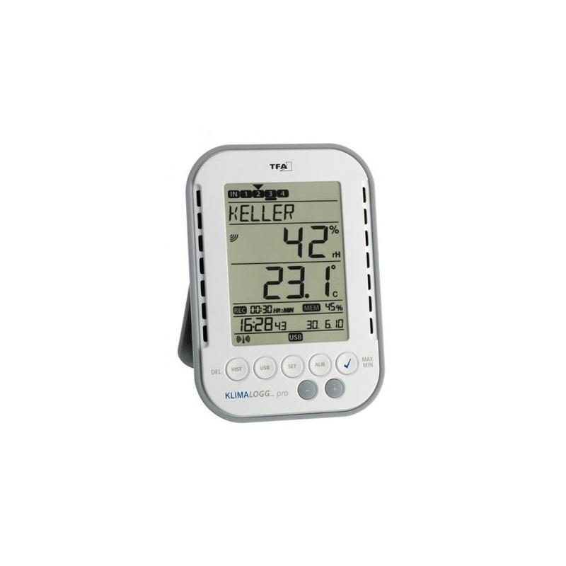 Ce thermo-hygromètre est utilisé pour mesurer la température et l'humidité relative d'un environnement Thermo-hygromètre mural avec fonction d'enregistrement de données. Prend en charge 8 capteurs sans fil externes supplémentaires (non inclus).