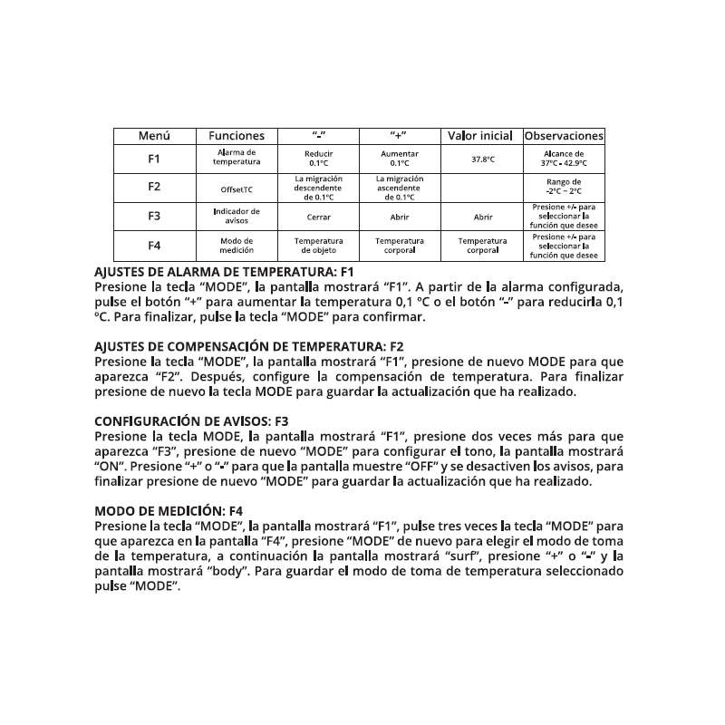 Il a la capacité d'enregistrer les températures corporelles entre 32º et 42,9º et dispose également d'une fonction d'alarme qui prévient en cas de fièvre si la température du patient est égale ou supérieure à 38º.
