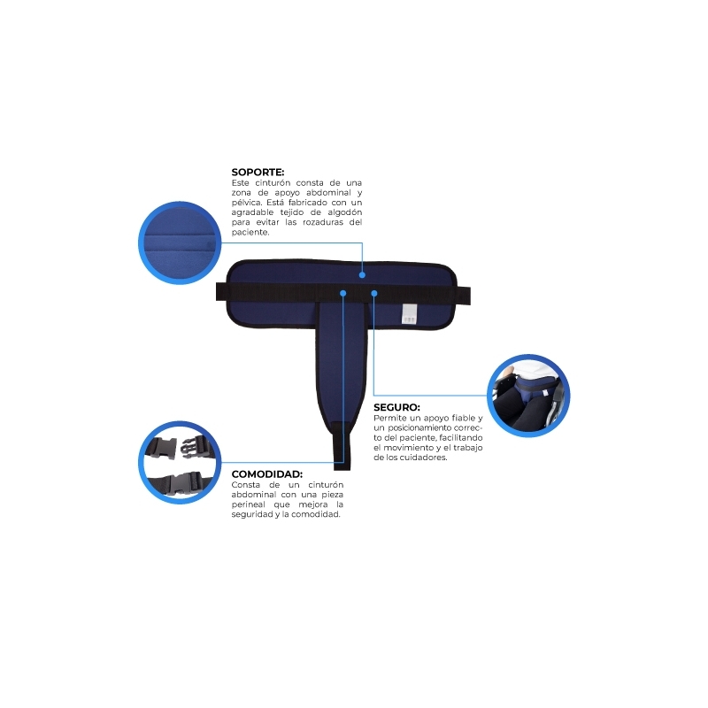 CONFORTABLE : Il s'adapte confortablement à l'utilisateur. Il se compose d'une ceinture abdominale avec une pièce périnéale qui améliore la sécurité et le confort.