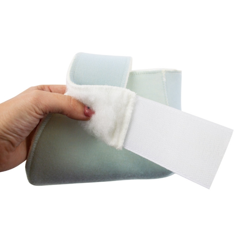 Il est doublé de velours à l'extérieur, ce qui permet de fixer le Velcro sur toute sa surface et d'ajuster le dispositif à la taille souhaitée pour une fixation correcte et un confort optimal. Il peut être placé sur le coude et le talon et peut être utilisé des deux côtés du corps.