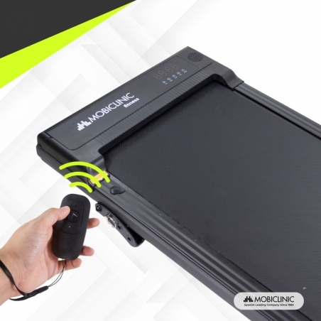 Il offre une vitesse réglable jusqu'à 8 km/h , s'adaptant aux allures de marche modérées et rapides, idéal pour tous les utilisateurs. Sa télécommande permet de régler la vitesse ou de mettre l'appareil en pause d'un simple clic, pour plus de confort et de sécurité.