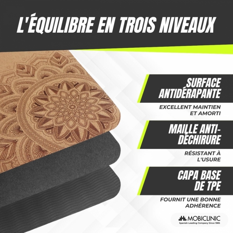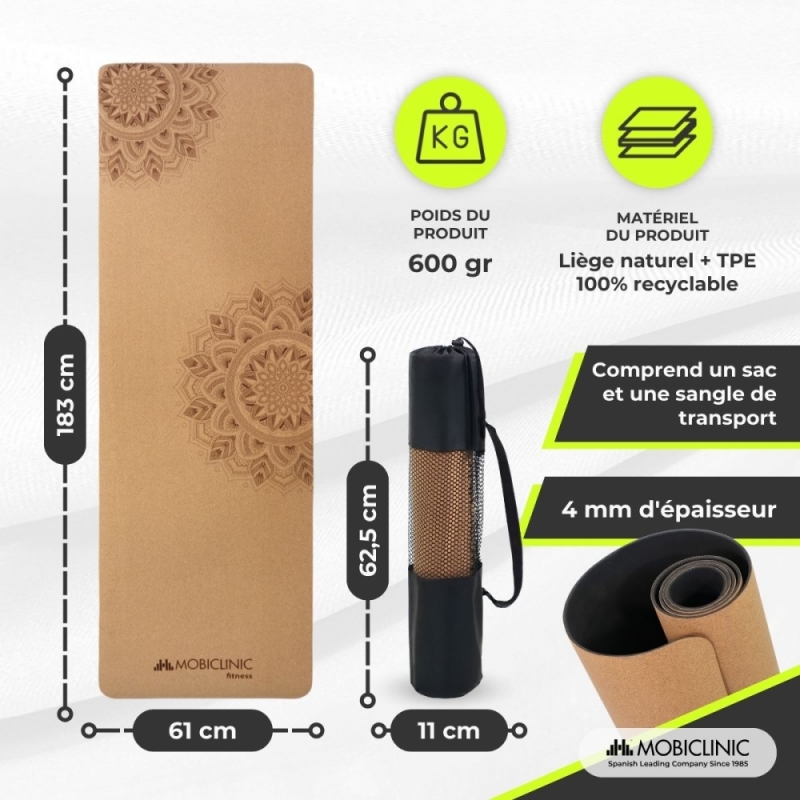 - Matériaux : Liège naturel + TPE 100% recyclable