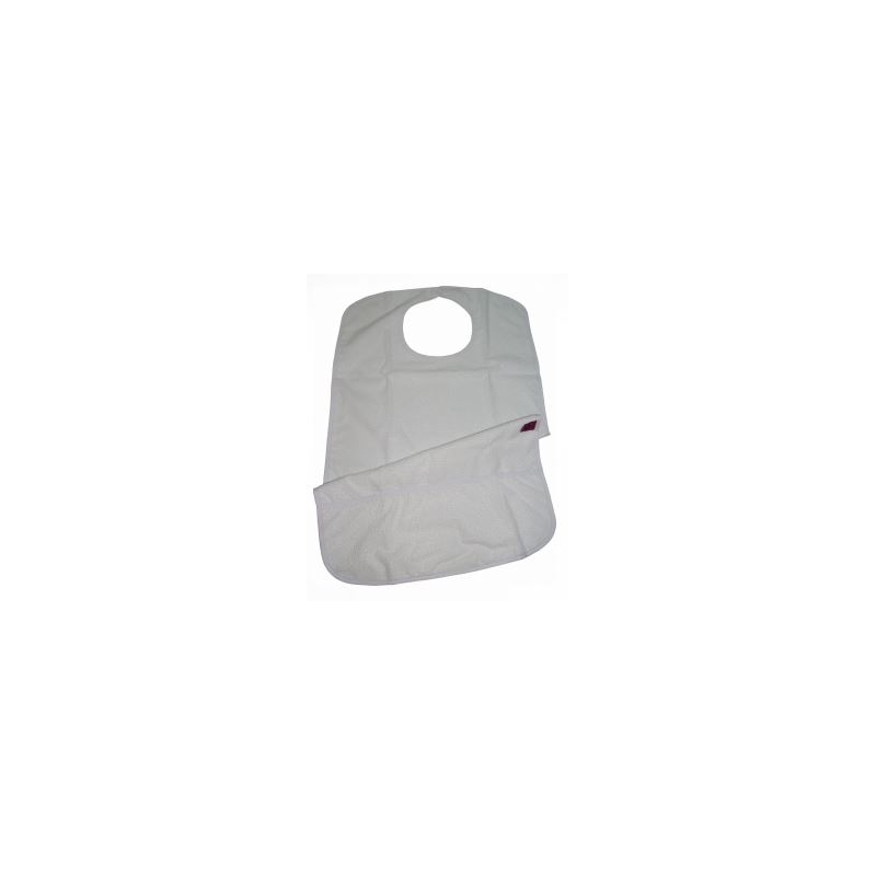 Notre bavoir sanitaire se distingue par sa composition : éponge imperméable (72% PVC, 22% coton, 6% polyester). Il a une fermeture à clip et une poche fixe incorporée.