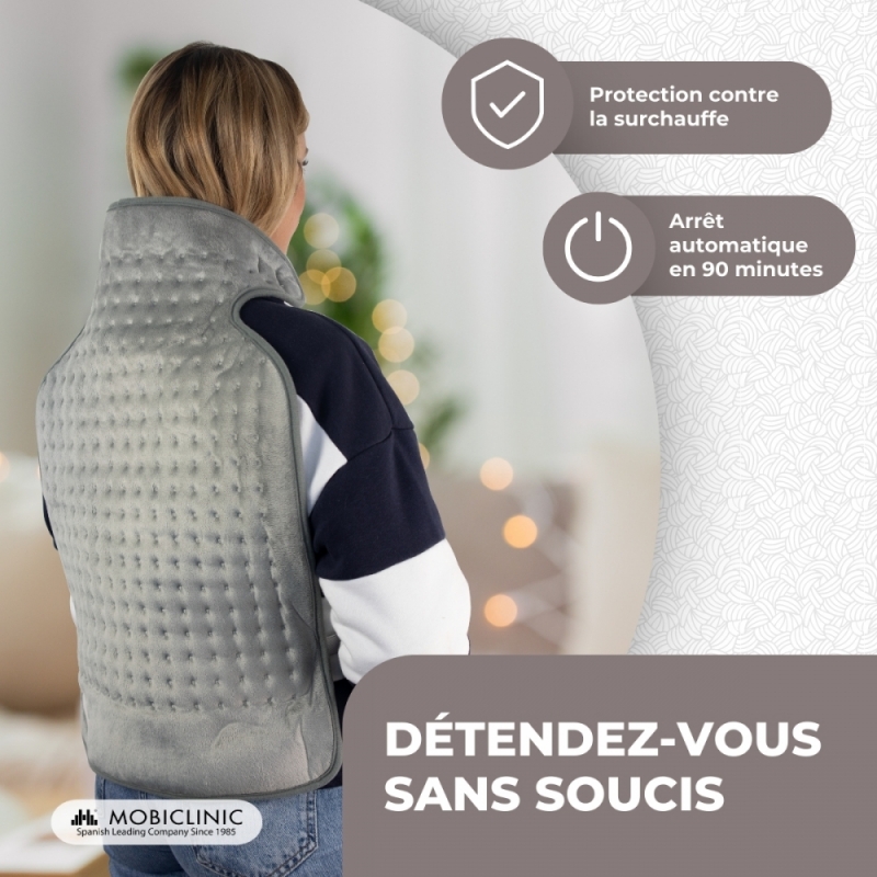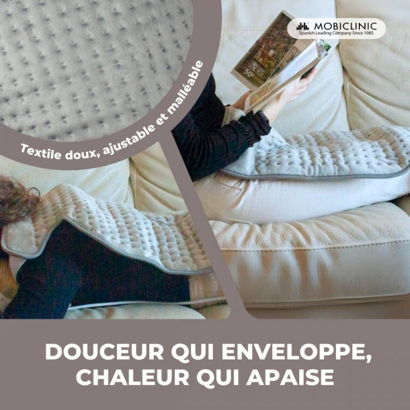 Cette chaleur douce dilate les vaisseaux sanguins et facilite la circulation, soulageant ainsi la douleur. Il contribue également à la récupération de la mobilité musculaire et articulaire, car il détend les muscles et réduit l'inconfort.