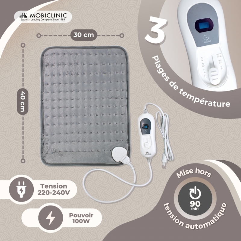 Les coussins chauffants fournissent une chaleur thérapeutique, c'est-à-dire une chaleur légèrement supérieure à celle du corps, mais jamais supérieure à 38 degrés Celsius.