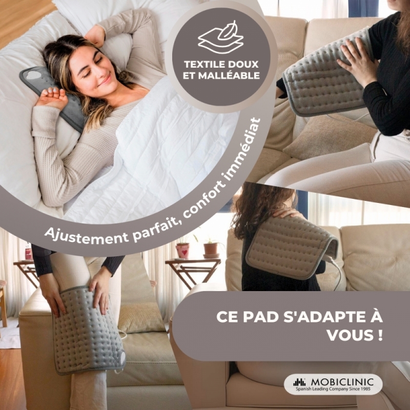 Cette chaleur douce dilate les vaisseaux sanguins et facilite la circulation, soulageant ainsi la douleur. Il contribue également à la récupération de la mobilité musculaire et articulaire, car il détend les muscles et réduit l'inconfort.