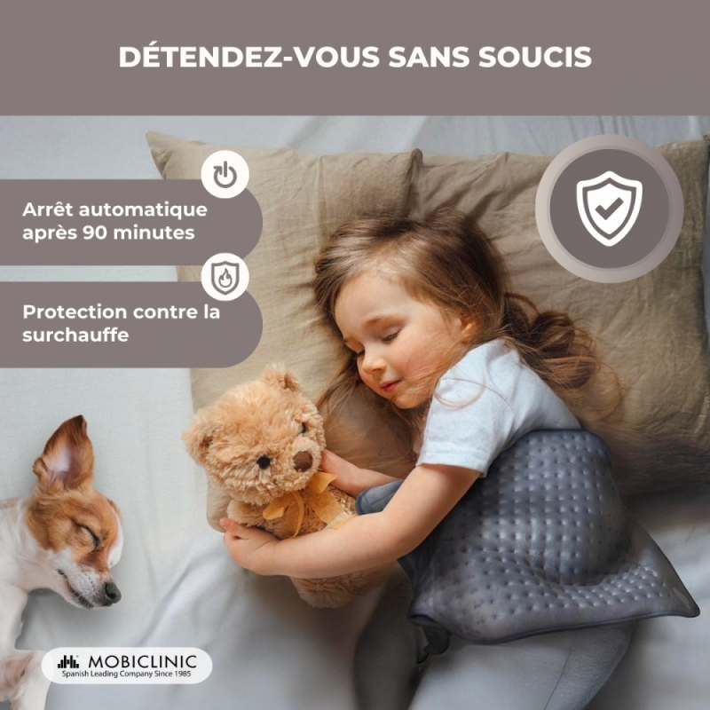 Arrêt automatique : pour votre sécurité pendant que vous vous reposez, le coussin s'éteint automatiquement après 90 minutes d'utilisation.