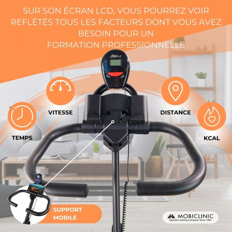 Vélo d'appartement | Volant d'inertie 10 kg | Réglable | Avec roues | Écran LCD | Charge max. 120kg | Makalu | Mobiclinic