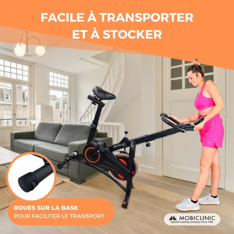 HOME GYM : Conçu avec des matériaux durables et stables, le vélo d'appartement Makalu s'adapte facilement à n'importe quel espace grâce à son design compact et ses roues de transport. Améliorez votre silhouette sans quitter la maison.