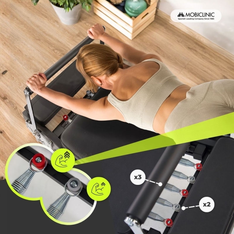 Appareil de Pilates Reformer | 5 en 1 | 5 ressorts de résistance | Pliable | Barre réglable | Poulies | Pilatfit | Mobiclinic